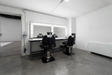 Totally white studio with half limbo curved only on the ground. Ideal for special effects. Large makeup/hair and stylist room totally detached from the studio.