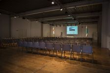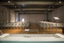 All'interno di una nuovissima palazzina indipendente, in cristallo e cemento bianco, una sala spettacolare, elegante e intima, di circa 380 mq (più 80 mq di ingresso), con pavimento in doghe di legno chiaro e due grandi finestre oscurabili sul lato destro. Perfetta per cene di gala, piccole presentazioni, feste private. E' collegata da una grande porta con Dada Café, lo spazio ristorante-bar interno al Superstudio Più. Grande hall d'ingresso interamente a vetri.
