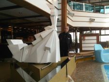 Costa Fascinosa's 3.780 passengers, next great flagship of the group that will be launch in Savona on May, 6th. It will be the biggest italian cruise ship where contemporary art plays the lead role. There are lot of works, among which an overshadowing and wiggly catalyse white resin figure that represents a long night dress with train. The sculpture "