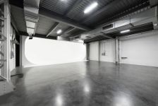 Sala di posa con fondale bianco in curva continua a uovo (cyclo). La grande dimensione e il limbo perfetto lo rendono ideale per foto d'arredamento, riprese video, illuminazioni accurate. Possibilità d'accesso con camion nello studio.