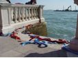 ConiglioViola, hanno attraversato tutta la Giudecca fino ai Giardini della Biennale. Qui il Coniglio ha esploso sui Giardini - sede principale della mostra - 52 cannonate.
