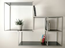 Vestita solo degli oggetti che contiene, Bones è la prima libreria in alluminio e ceramica sottile, un'ossatura versatile e leggera ideata da